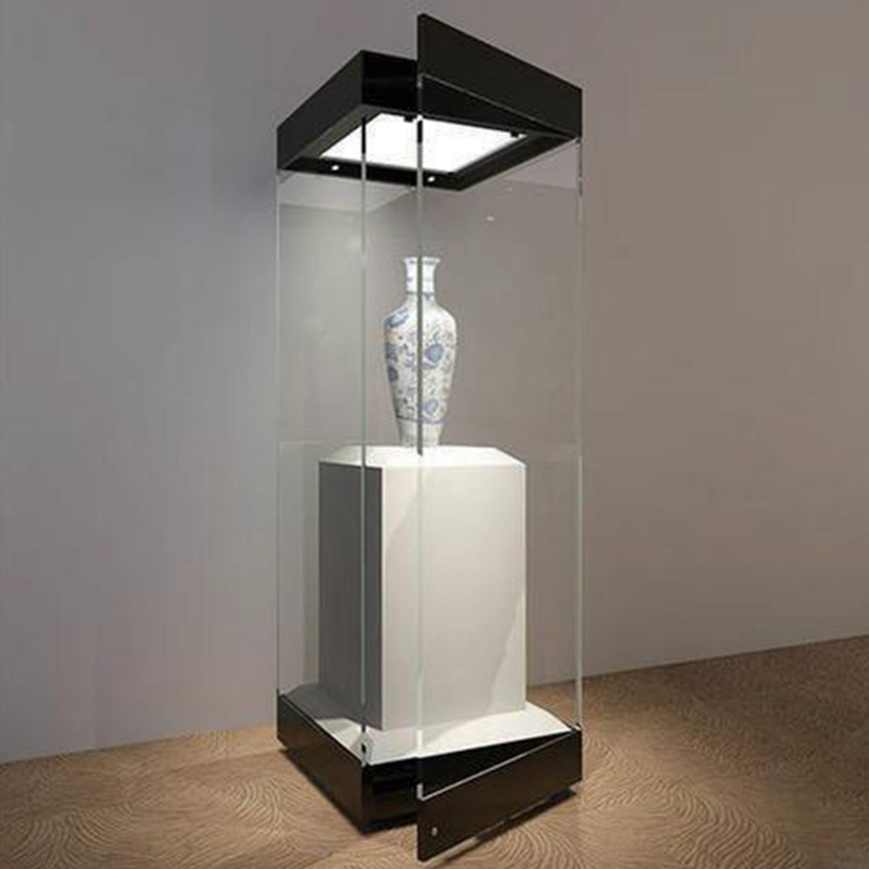 Computer controlled electric translation system: Computer controlled electric positioning, bearing three-dimensional flat pushing in place, linear guide rail left and right translation opening system. Manual rotary translation system: manual synchronous translation system, manual precision ball screw rocking positioning, linear quide manual left to right translation opening system. Sealed: Track type opening sealed, with imported silicone strips for auxiliary sealing. | Hydraulic support rods are used. According to the different shapes of the display cabinet glass cover and glass, the weight is calculated, and hydraulic supports with different supporting weights (such as 50kg, 100kg - 500kg, etc.) are selected for power-assisted opening. The best supporting force is combined with manual opening. Sealing: Hydraulic-assisted lift-up sealing opening, with imported silicone strips for auxiliary sealing. |